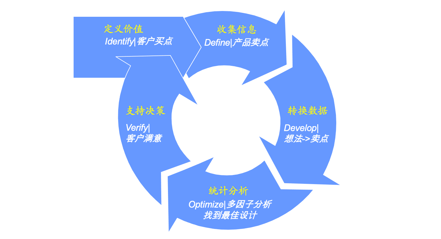 很多企业都有很多数据,但却不知道如何分析如何创造价值支持业务。 所谓的价值就是让客户愿意为之买单的哪一部分的产品特性、设计参数、工艺变量、关键控制点。 如果这些价值点没有被DFSS的工作正确的定义,后续的信息收集和分析分析也就无从谈起。