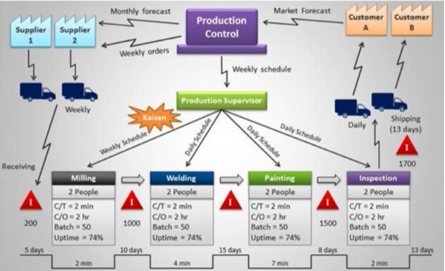 价值流图相应方法诞生于1980年代的丰田,它是系统的一个静态写照,它代表了静态的业务流和与之相伴的采集数据,目的是为了显示“浪费”存在的位置并按照精益原则消除浪费增加价。可是当系统存在更为复杂的行为和交互关系、随机性,VSM静态的图表在精确地代表真实系统方面则显得捉襟见肘。当流程的特点远离VSM能有效应用的较为稳定的生产特征和环境时,VSM的价值呈指数级的削弱。流程的波动使得VSM图析结果越来越令人不解和疑惑。